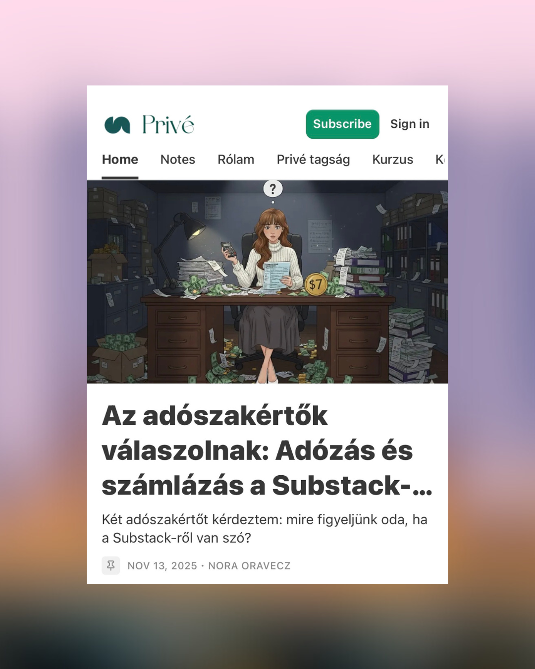 A Privé egy zárt, előfizetéses prémium klub tartalomgyártóknak, énmárkaépítőknek, tanácsadóknak, vállalkozóknak. Ma már ez az egyetlen hely, ahol nemcsak beengedlek a vállalkozásom kulisszái mögé, de meg is osztom, hogyan építem.